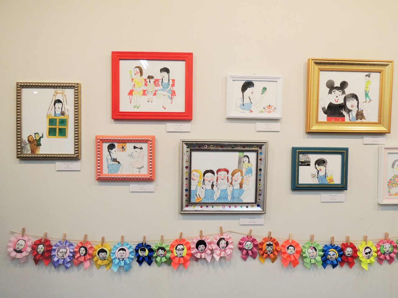 group show ended 2015/07/26 グループ展の展示が終わりました。 絵と関係なく似顔絵ロゼットも設置することになりました。 ドロシーのその後の絵たち。 オープニングでは似顔絵ロゼット作りをしました。 暑い中見に来てくれた方々どうもありがとう。 というお決まりのセリフをキーボードをカチャカチャ打ち込むわたし。