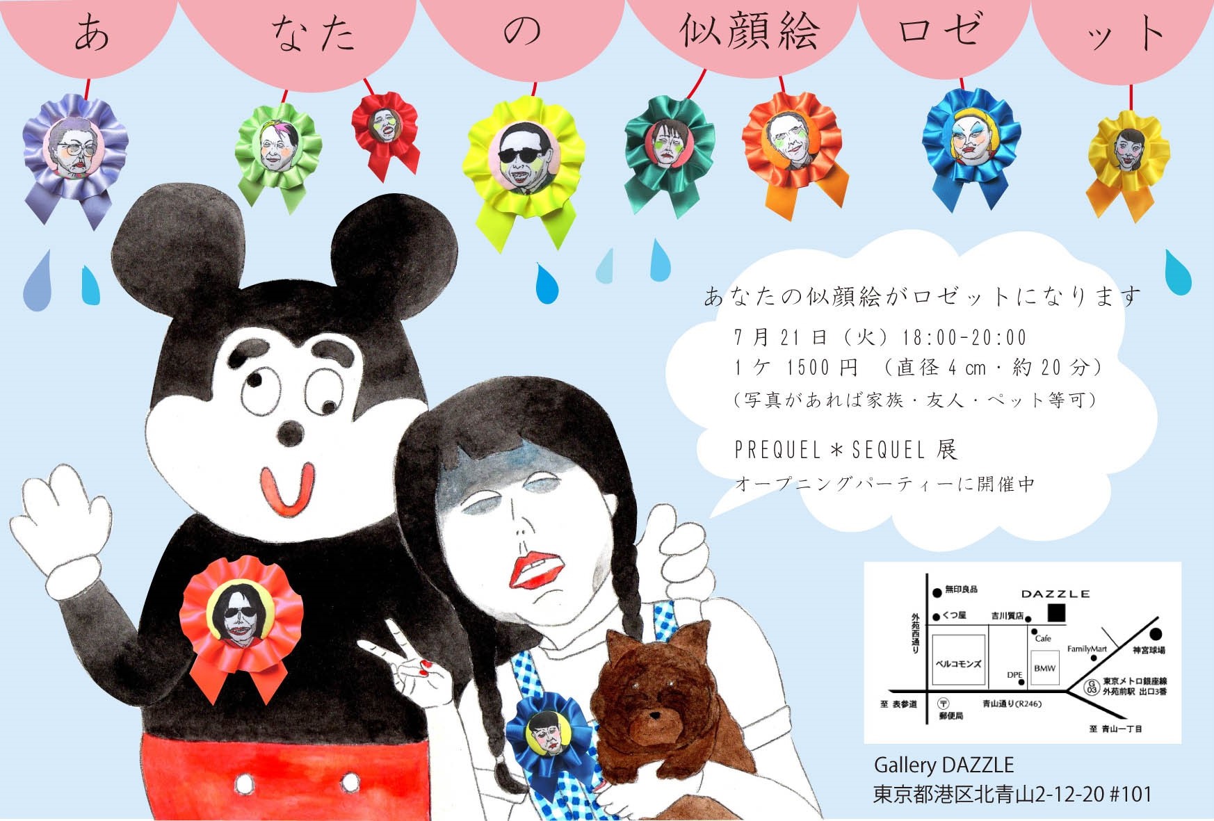 group show opening 似顔絵ロゼット 2015/07/21 グループ展 PREQUE*SEQUEL のオープニングにて 似顔絵ロゼットを作っています。 opening reception : 7月21日(火)18:00-20:00 Gallery DAZZLE 東京都港区北青山2-12-20 #101 銀座線外苑前駅 出口3番 徒歩3分 残業のない方はぜひ。